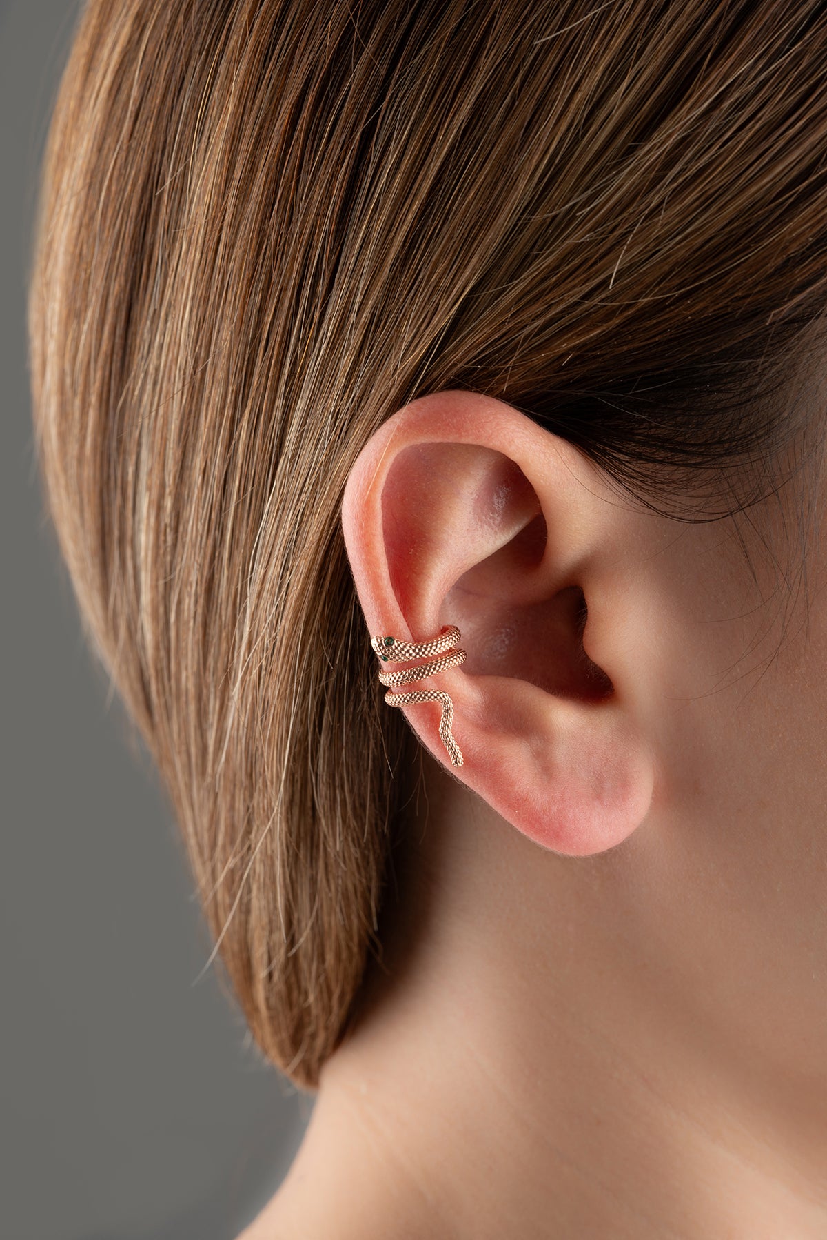 Unleash Your Inner Rebel: Bold Elegance Without the Piercing Make a daring statement with the Velanvoir Serpentine Wrap Ear Cuff. Designed to mimic the fluid grace of a serpent, this intricately textured cuff wraps around your ear cartilage, offering a high-fashion, "edgy" look without the need for a new piercing. It’s the ultimate accessory for the woman who isn’t afraid to stand out.