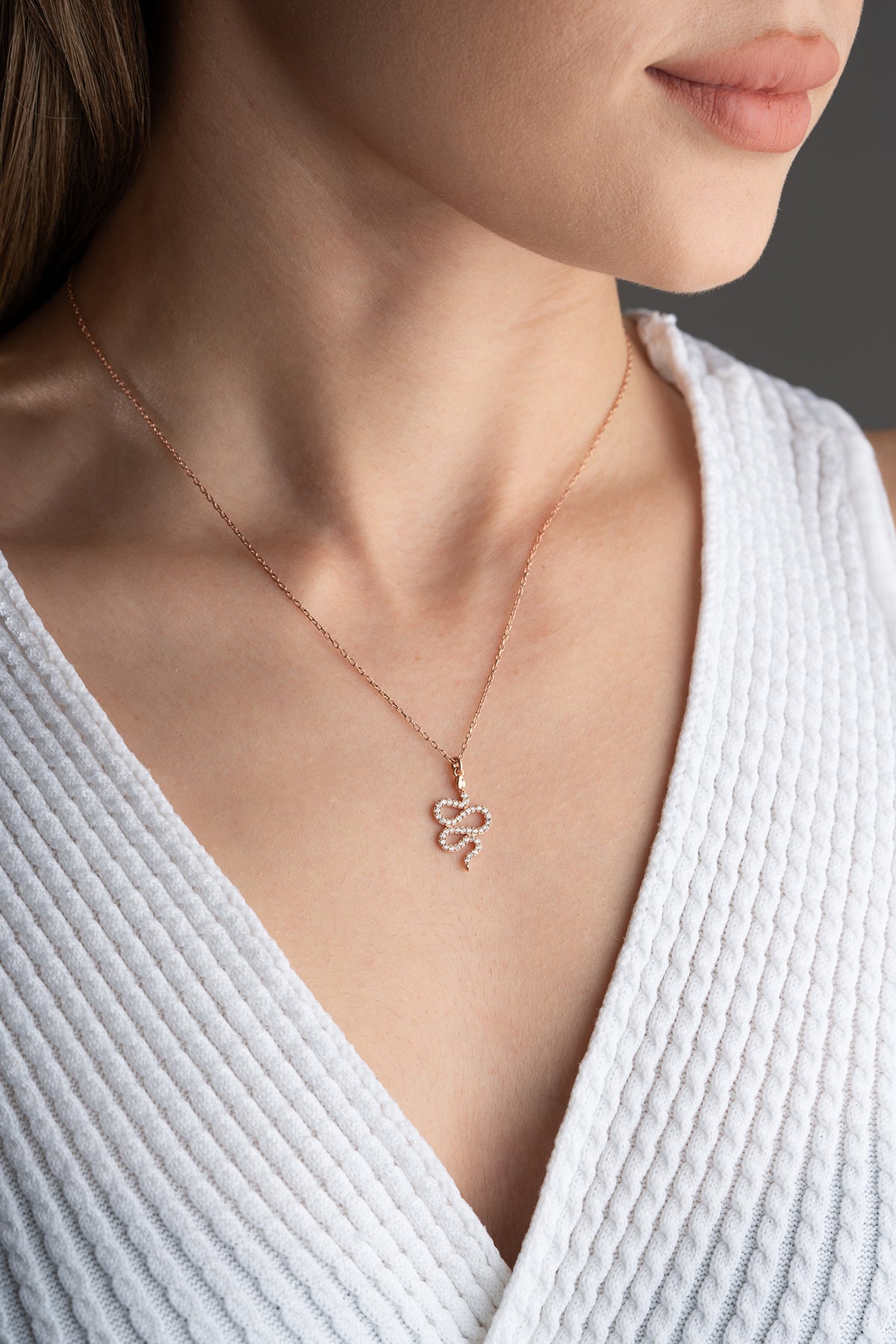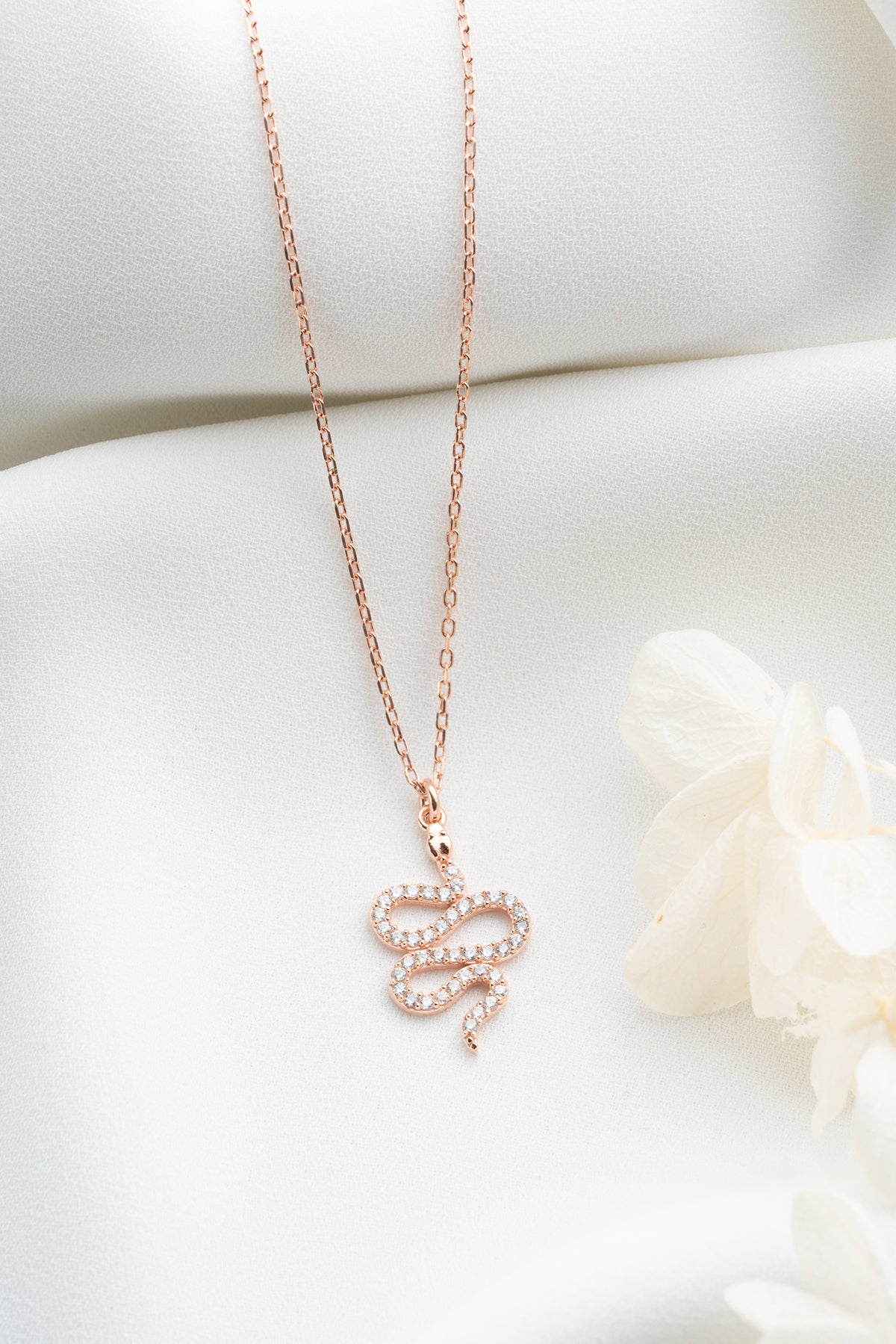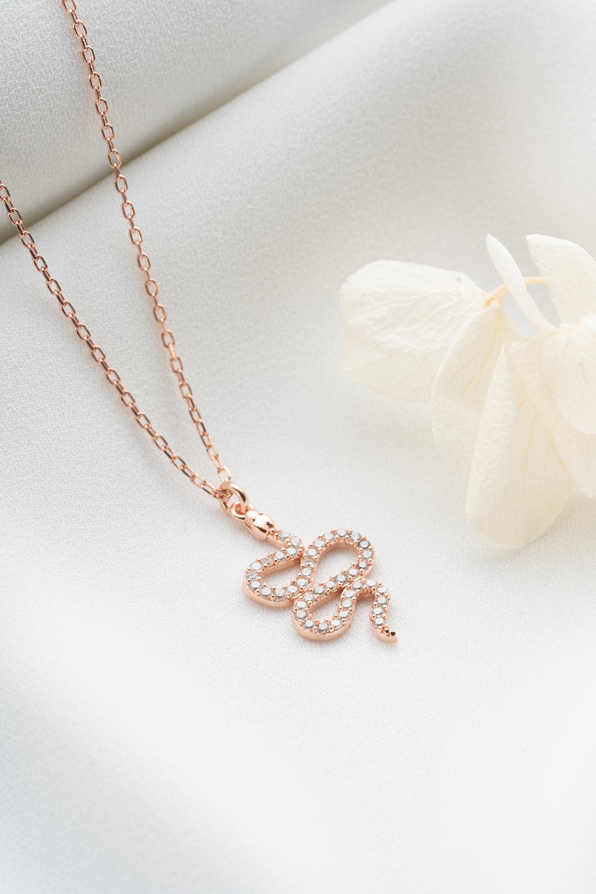 Sleek Mystique: The Allure of the Golden Serpent Embrace the timeless symbolism of transformation and wisdom with the Velanvoir Serpentine Radiance Necklace. This delicate yet striking piece features a fluid, S-curved serpent pendant, meticulously encrusted with a continuous pave of shimmering crystals. It is a design that balances daring edge with refined luxury.