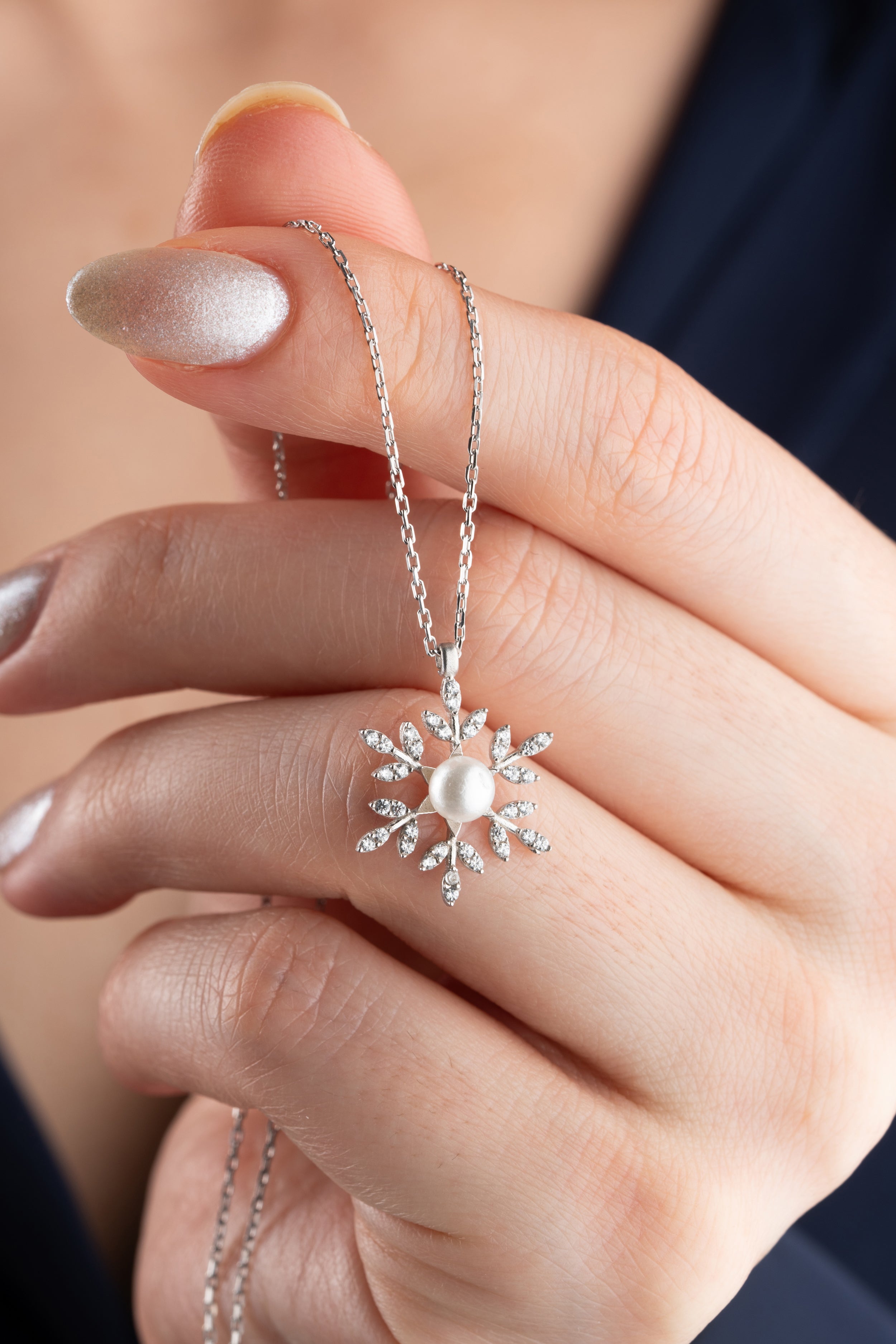 Style Tip: This is the ultimate "Holiday Season" accessory, but its timeless pearl element makes it a year-round classic. Wear it to add a touch of "Ice Queen" glamour to your office attire, or gift it to someone special as a symbol of their unique and delicate beauty. It pairs beautifully with minimalist silver studs or our matching Snowflake Pearl Earrings.