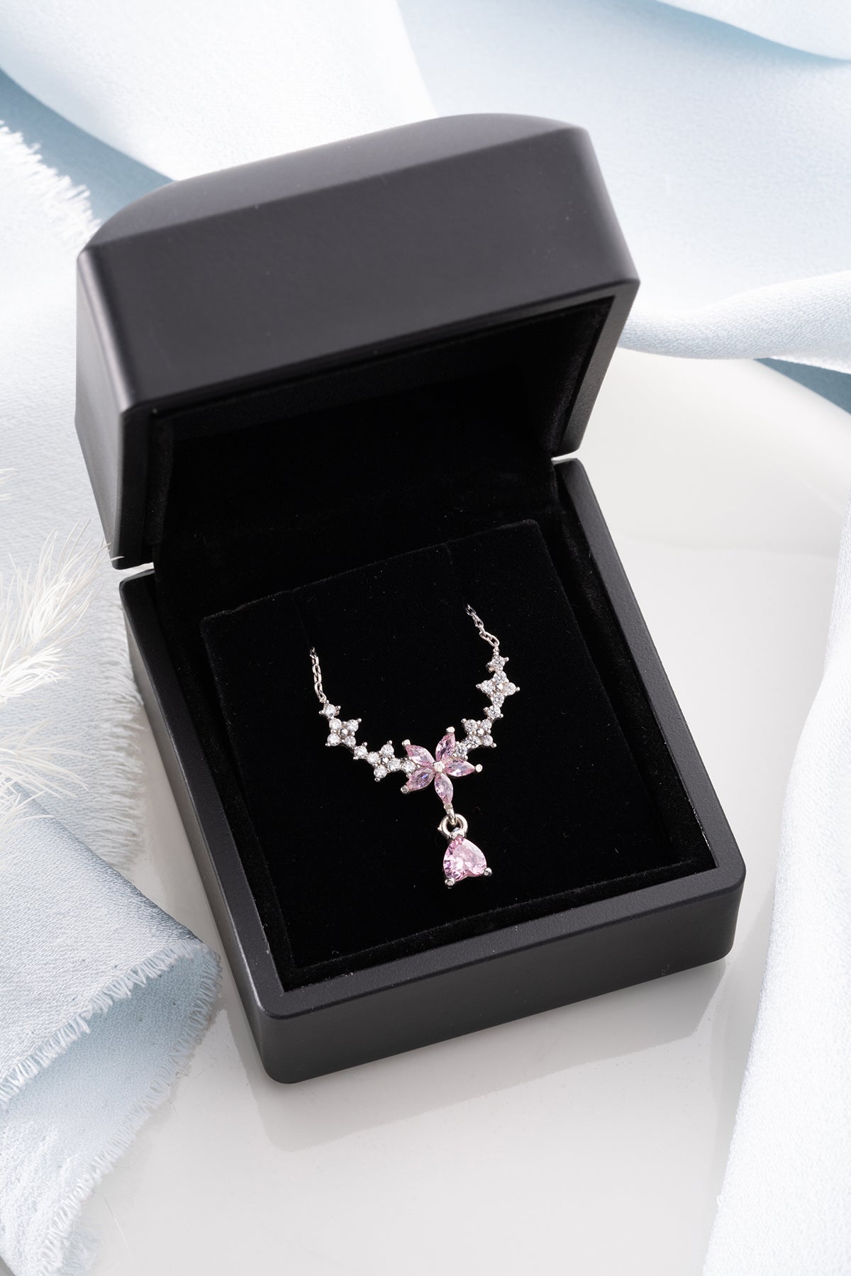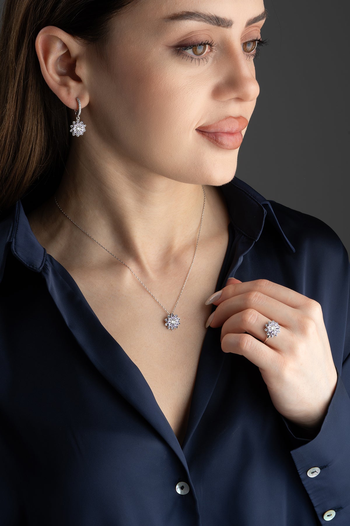 Modern Arctic Aesthetic: Set in a sleek, silver-toned rhodium finish, this necklace offers a cool and sophisticated look that elevates everything from a navy silk blouse (as seen in our lookbook) to a white evening gown.