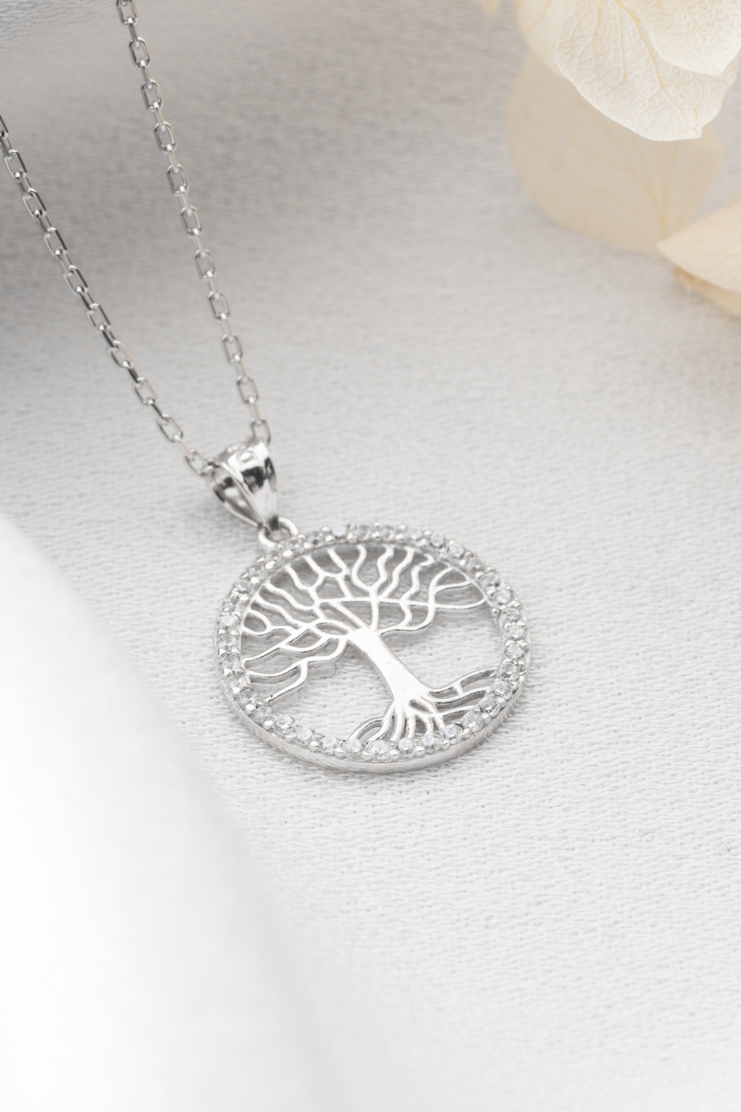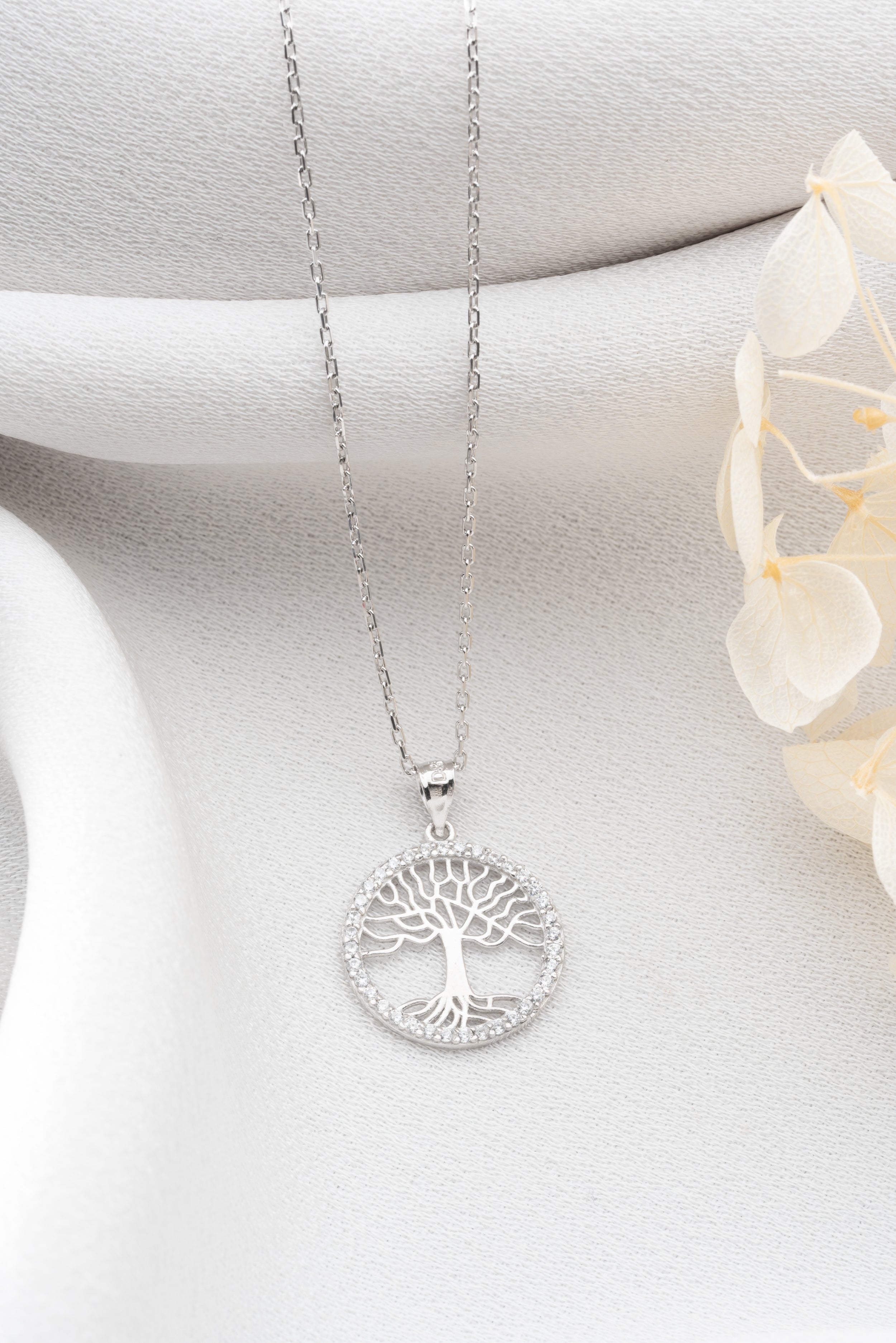 Intricate Tree Silhouette: The silver-toned tree features delicate, intertwining branches and roots, representing growth, family, and the interconnectedness of all life.
